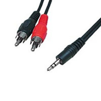Audio kábel egyik végén egy 3.5mm sztereo jack csatlakozóval, a másik végén 2db RCA csatlakozóval analóg audio jel továbbítására.