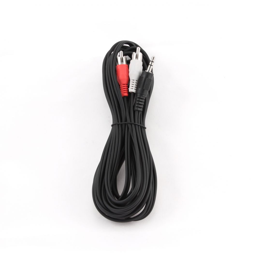 Audio kábel egyik végén egy 3.5mm sztereo jack csatlakozóval, a másik végén 2db RCA csatlakozóval analóg audio jel továbbítására.