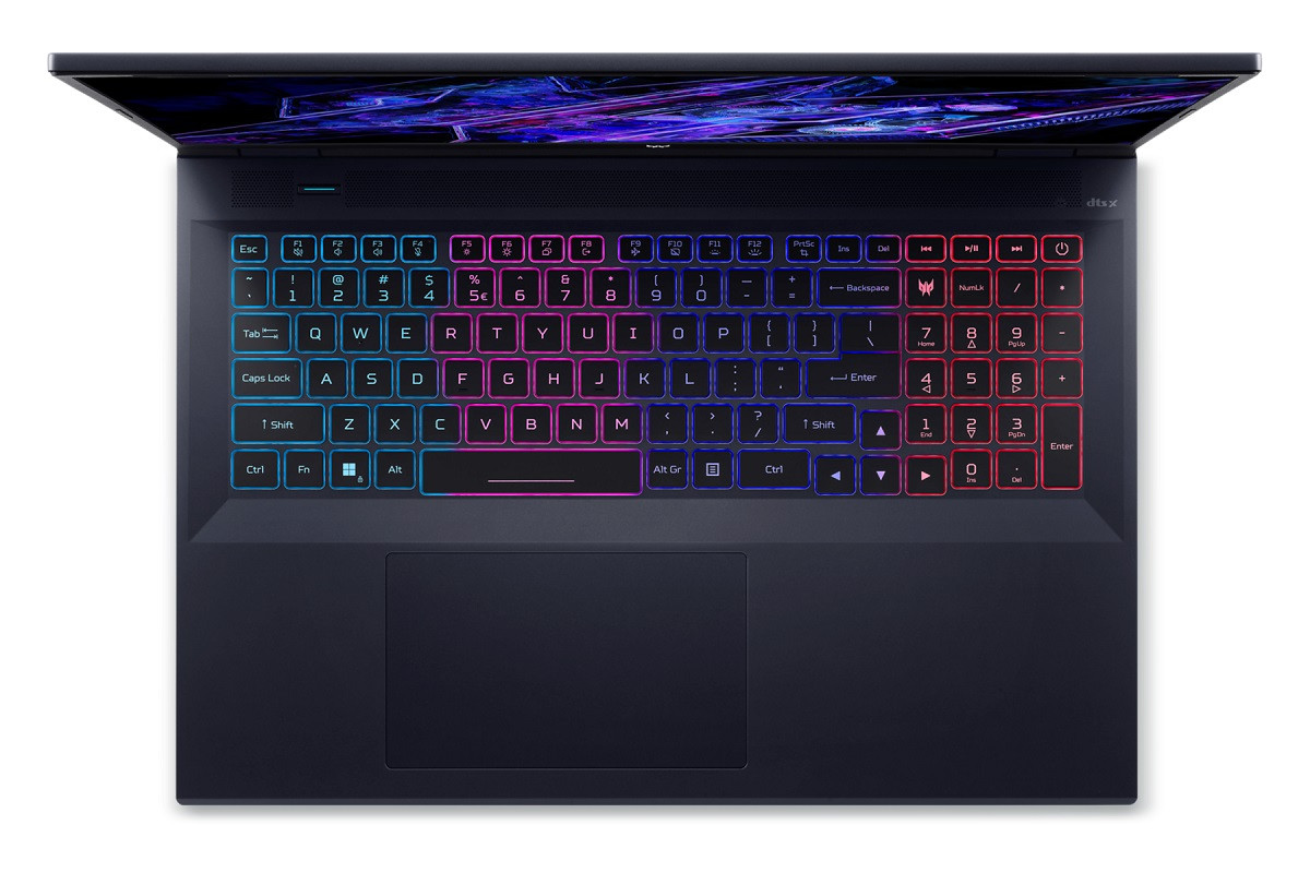A személyre szabott RGB billentyűzet saját Predator betűtípusunkat használja és két figyelemreméltó, létfontosságú billentyűvel is fel van szerelve: Turbo és PredatorSense™. Válaszd a Turbo billentyűt az azonnali túlhúzáshoz, vagy nyomd meg a PredatorSense™ billentyűt a segédalkalmazás megnyitásához. Ezzel az alkalmazással monitorozhatod a hőmérsékletet, szabályozhatod a ventilátorokat, bekacsolhatod a túlhajtás, illetve személyre szabhatod a billentyűzet világítást is.