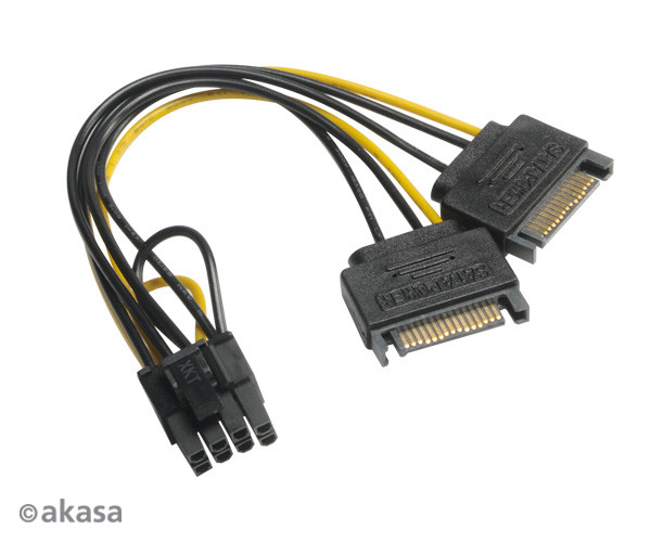 Külön tépellátást igénylő VGA kártyákhoz 6+2 pines tápátalakító kábel 2db SATA tápcsatlakozóról.