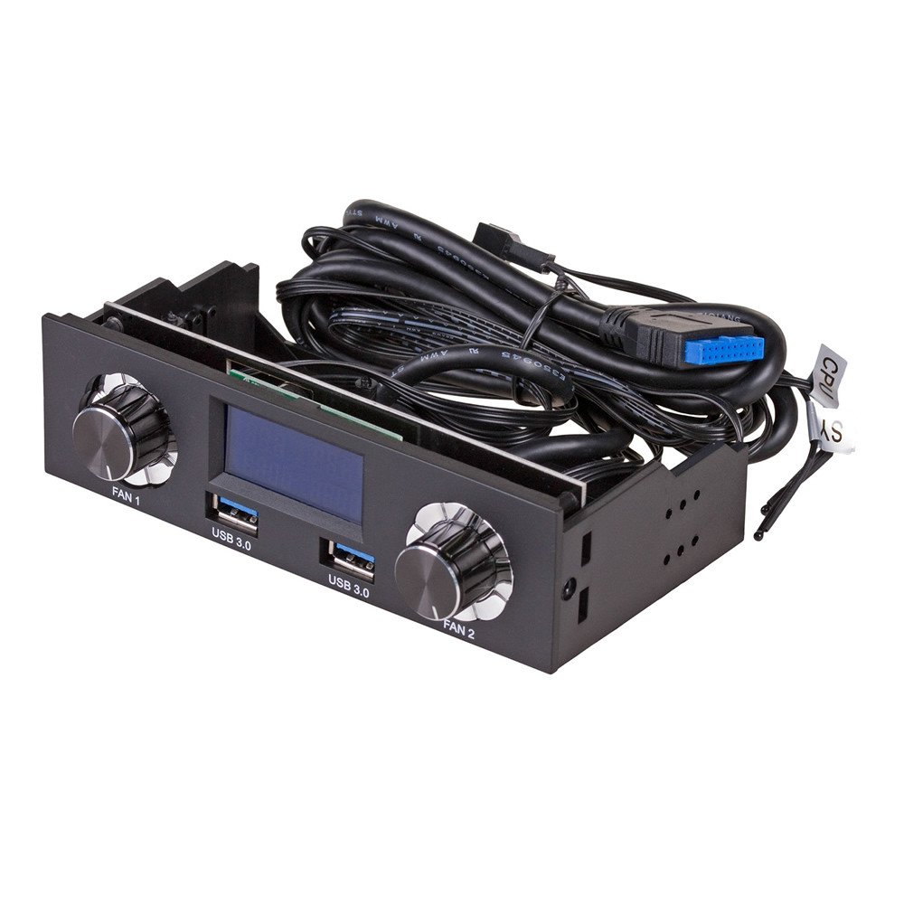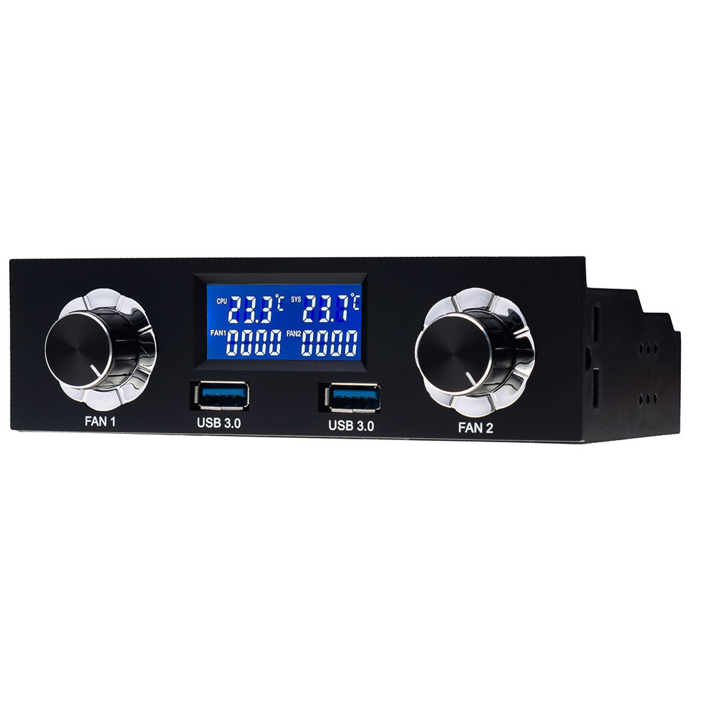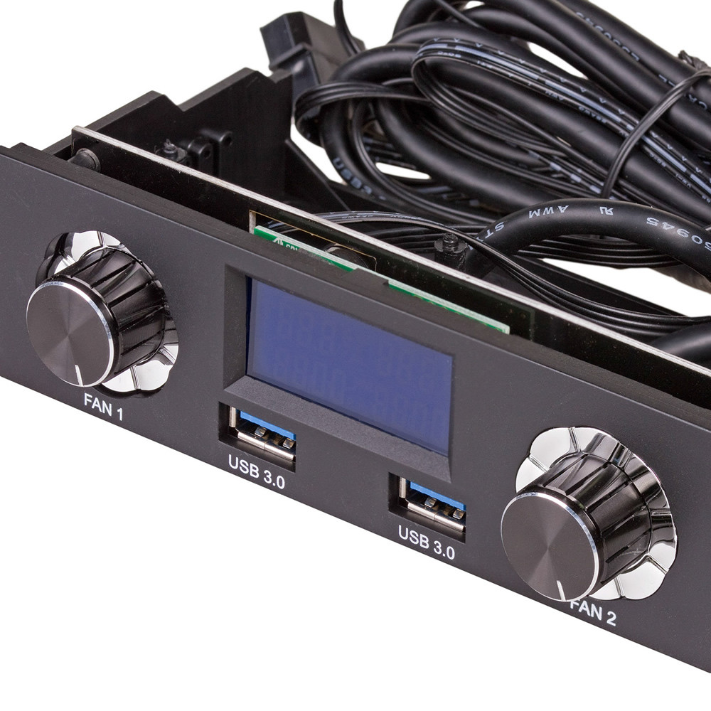 Akyga© AK-CA-24 5,25″-os helyre szerelhető LCD panel LCD képernyővel, két ventilátor sebességszabályozóval és két USB 3.0 porttal.