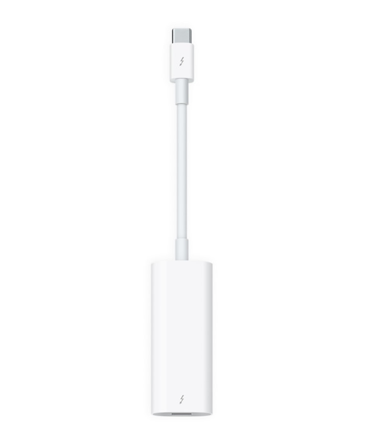 A Thunderbolt 3 (USB C) – Thunderbolt 2 adapter segítségével a Thunderbolt és Thunderbolt 2 csatlakozós eszközeidet – például külső merevlemezeidet és Thunderbolt-dokkjaidat – csatlakoztathatod a MacBook Pród bármelyik Thunderbolt 3 (USB C) portjához.