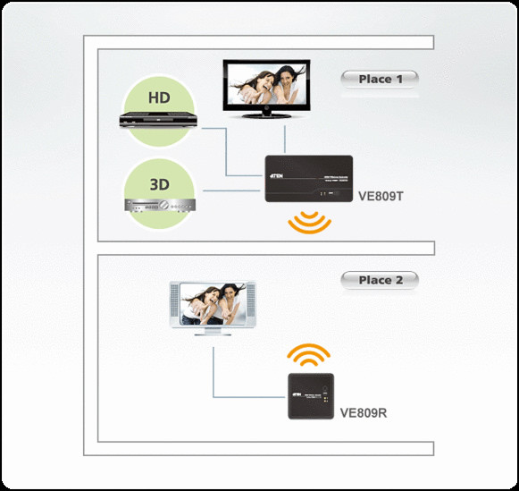 ATEN HDMI Full HD Wireless Extender, vezeték nélkül, akár 30m-ig