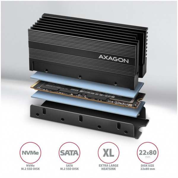 Axagon CLR-M2XL M.2 SSD (2280) hűtőborda (36 mm magas)