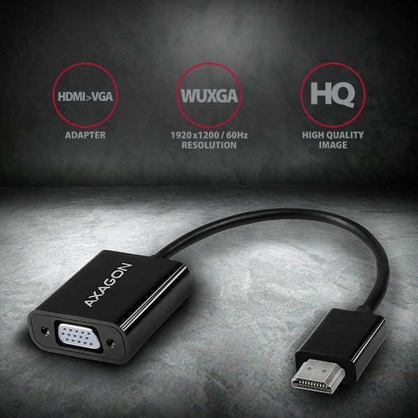 HDMI -> VGA aktív AXAGON RVH-VGN adapter VGA monitor / TV / projektor számítógéphez vagy egyéb HDMI kimenethez való csatlakoztatáshoz. Használható set-top boxokkal vagy Xbox és Playstation konzolokkal is.