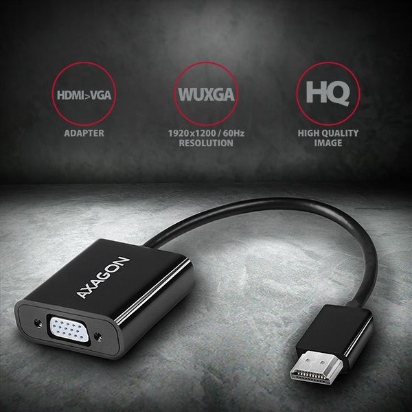 HDMI -> VGA aktív AXAGON RVH-VGAN adapter hangkimenettel a régebbi VGA monitor / TV / projektor számítógéphez vagy egyéb HDMI kimenethez való csatlakoztatáshoz. Használható set-top boxokkal vagy Xbox és Playstation konzolokkal is.