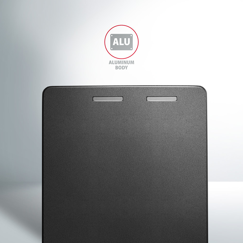 A külső fémház fekete színű, elegáns, matt felületű, amely megakadályozza a nem kívánt ujjlenyomatokat. Az alumínium doboztestés nagyszerű M.2 SSD lemezhűtést biztosít.