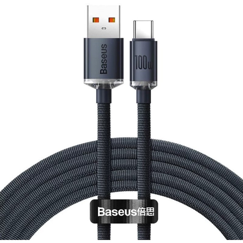 Baseus Crystal Shine USB-C – USB-A (M/M) kábel, 100W (5A) 2m fekete