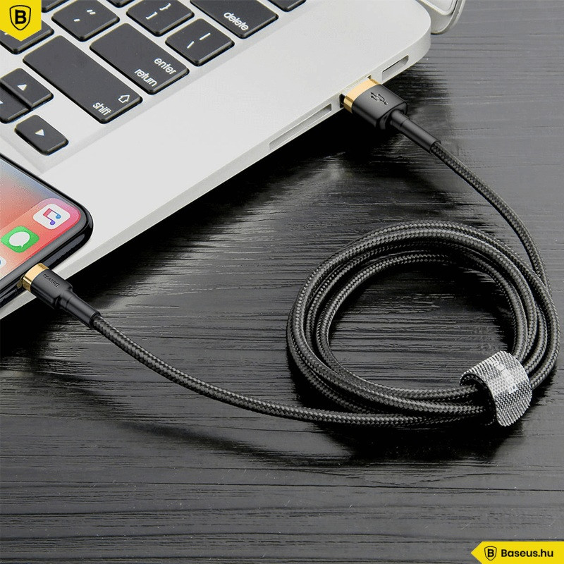 Rendkívül gyors és tartós lightning adat/töltőkábel szövet fonatban. Garantálja a gyors és biztonságos töltést a 2.4A-nek és a tiszta réz anyaghasználatnak köszönhetően. Minden kábel legkritikusabb pontja a kábel és a fej csatlakozása. Ezt a Baseus megerősítette, így rendkívül strapabíró és ellenáll az esetleges repedéseknek. A töltés és adatátvitel egyszerre lehetséges. Az alumínium kábelfejek elegánsak és tartósak, ellenállnak a kopásnak és az oxidációnak. A kábelt egy erős, szövet fonatban helyezték el. Nem csak rendkívül tartós, hanem kellemes tapintású is. Praktikus tépőzár könnyíti meg a tárolást és megakadályozza a zsinór összekuszálódását.