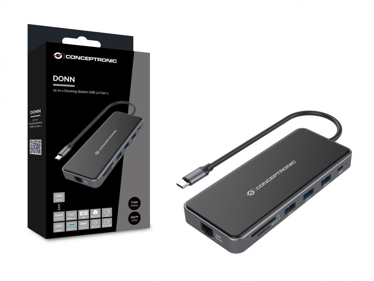 - 12-in-1 USB-C > HDMI/VGA/USB-C PD/USB-C adat/USB 3.0/USB 2.0/SD/TF/GbE/AUX multiport adapter