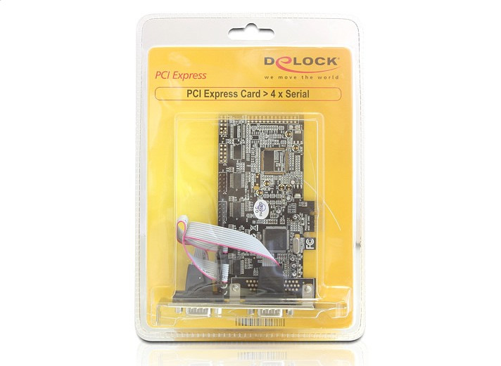 A Delock PCI Express kártya a PC-jét négy külső soros csatlakozóval bővíti. A kártyához szkennert, nyomtatót, egeret stb. csatlakoztathat.