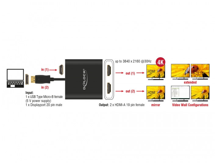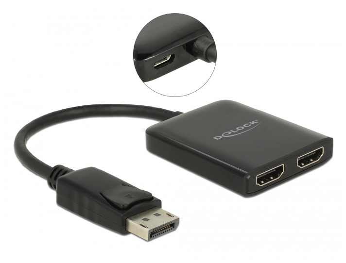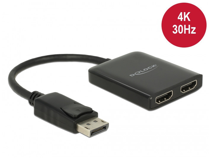 Delock DisplayPort elosztó – 1x DisplayPort > 2x HDMI 4K 30 Hz