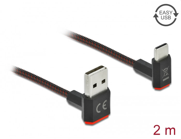 Ez az EASY-USB A-típusú csatlakozódugóval és USB-C™ csatlakozódugóval ellátott Delock kábel a megfelelő USB-csatlakozóhüvelybe csatlakoztatható mindkét irányban. Emiatt a csatlakozódugó két irányban használható, ami egyszerűbbé teszi a csatlakoztatást.