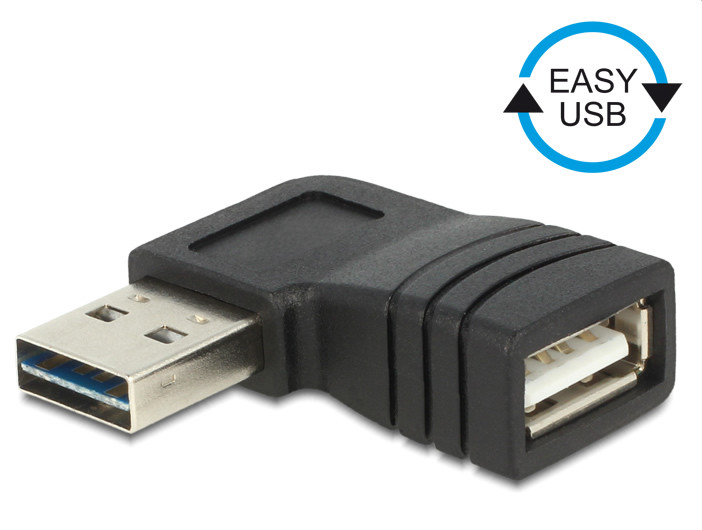 Ezzel az adapterrel kifejezetten szűk helyen is csatlakoztathatók az USB 2.0 kábelek. A kábelszakadást megelőzheti. EASY-USB kialakításának köszönhetően a dugó mindkét irányba csatlakoztatható egy USB aljzatba.