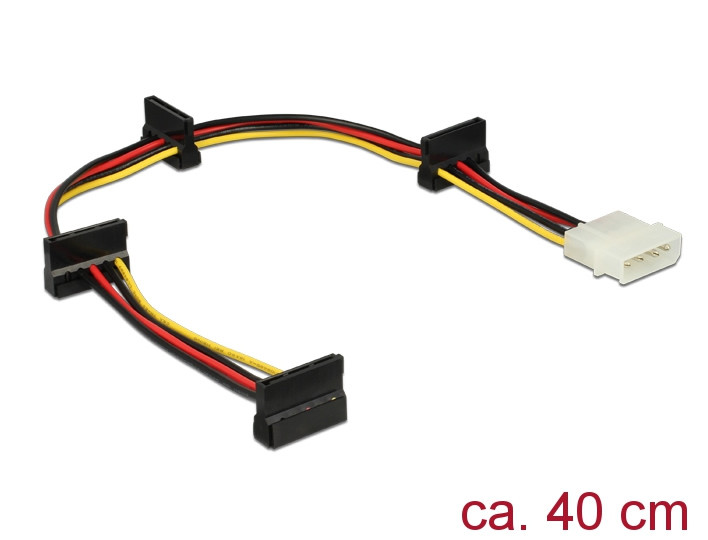 Ezt a tápkábelt négy SATA-eszköz tápcsatlakozójához lehet csatlakoztatni, és a kábel egy 4 tűs Molex-porton keresztül biztosít áramellátást.