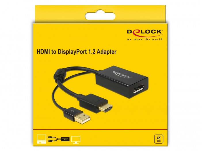 Delock HDMI > DisplayPort 1.2 átalakító, 24cm kábellel