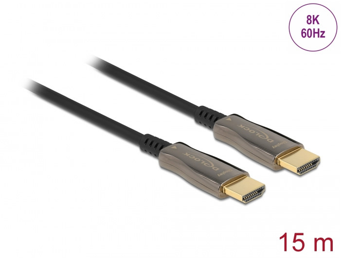 Ezzel a Delock kábellel HDMI csatlakozófelülettel rendelkező eszközöket például monitorokat vagy tévéket csatlakoztathat személyi számítógéphez vagy laptophoz. Ez az aktív optikai kábel különösen vékony, és hosszabb távon is veszteségmentesen tud jeleket továbbítani.