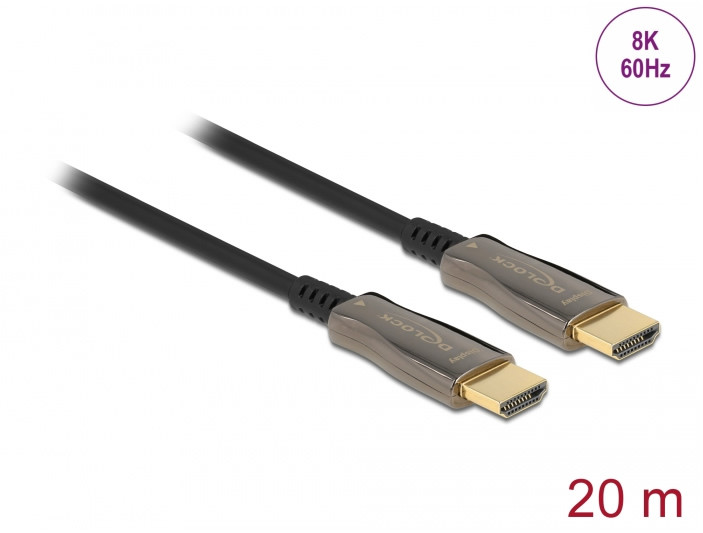 Ezzel a Delock kábellel HDMI csatlakozófelülettel rendelkező eszközöket például monitorokat vagy tévéket csatlakoztathat személyi számítógéphez vagy laptophoz. Ez az aktív optikai kábel különösen vékony, és hosszabb távon is veszteségmentesen tud jeleket továbbítani.