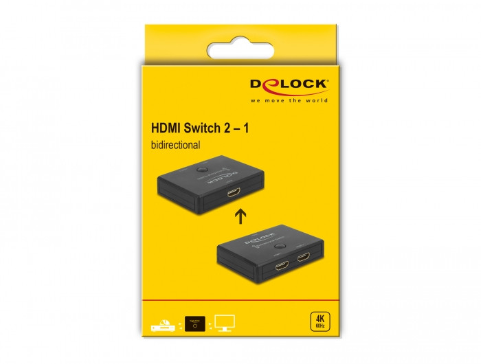 Ez a Delock HDMI-kapcsoló egy manuális, kétirányú kapcsoló különféle, HDMI-porttal rendelkező eszközök csatlakoztatásához. A kapcsoló két különböző alkalmazást kínál.