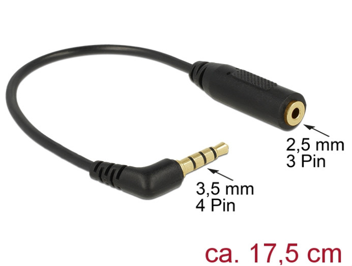 Ennek az adapternek a segítségével egy 3,5 mm-es, 4-pin combo audio jack csatlakozó alakítható át 2,5 mm-es 3-pines sztereo jack csatlakozóra.