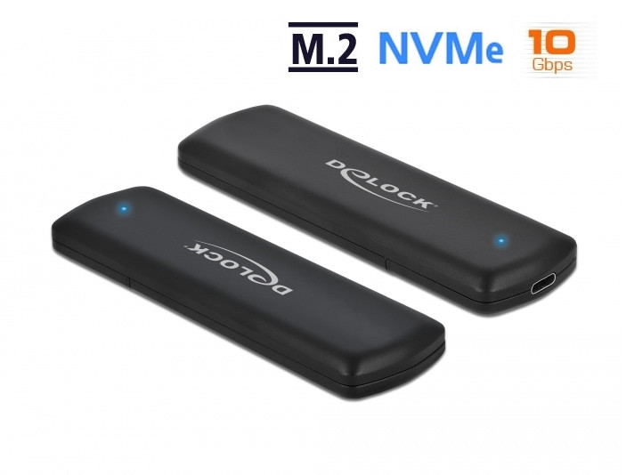 Ez a Delock merevlemezház egy 2280, 2260, 2242 vagy 2230 formátumú M.2 PCIe NVMe SSD telepítését teszi lehetővé, és USB csatlakozón keresztül csatlakoztatható egy asztali vagy hordozható számítógéphez. A masszív fém keret biztosít egy optimális hőmérsékletet a memória számára.