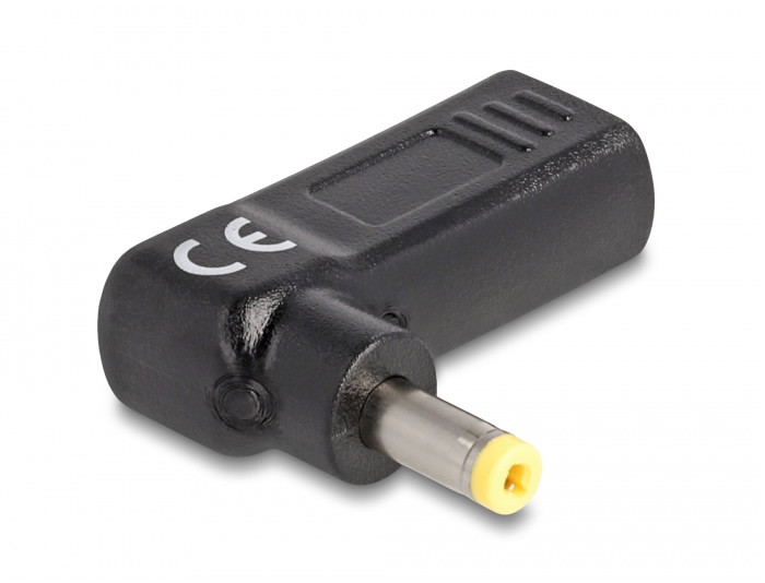 Ezzel a Delock adapterrel egy USB Type-C™ kábel használható egy laptop töltésére. A 90° hajlítás megakadályozza a kábel meghajlítását, és kis átmérőjének köszönhetően az adapter ideális utazáskor történő használatra is.