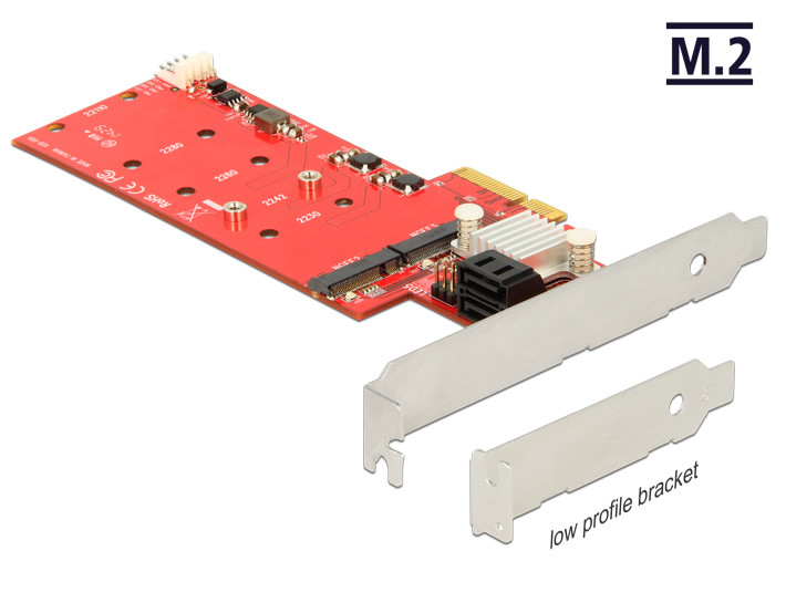 Ez a Delock PCI Express-kártya két M.2 aljzattal, valamint további kát SATA porttal bővíti ki a számítógépét. Lehetővé teszi, hogy két 22110, 2280, 2260, 2242, 2230 formátumú M.2 SATA-modult, valamint két SATA HDD-t vagy SSD-t csatlakoztasson a kártyához RAID módban.