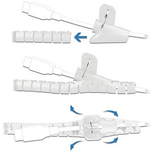 A spirális kábelburkolat irodában és otthon is használható, hogy rendezett és tiszta kábel elrendezést alakítsunk ki.