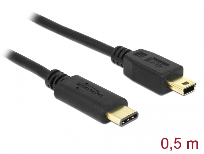 Ez a Delock gyártmányú USB-kábel lehetővé teszi, hogy Mini-B típusú USB-csatlakozóval ellátott készüléket csatlakoztasson egy szabad USB Type-C™-porttal rendelkező számítógéphez vagy laptophoz.
