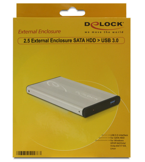 Az alumínium házba bármilyen 2.5″ SATA HDD beépíthető. Bármilyen PC-hez vagy notebook számítógéphez köthető az USB 3.0 csatolón keresztül.