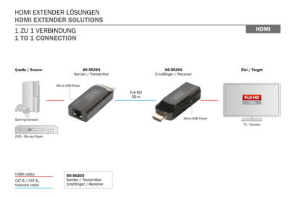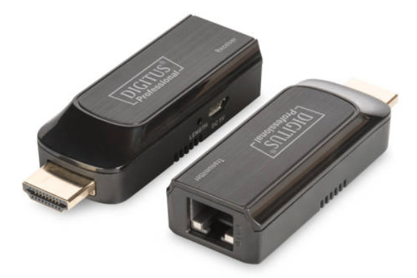 HDMI 1080p (audio és video) jel továbbítására alkalmas eszköz UTP Cat6 / Cat6A / Cat7 kábelen keresztül, maximum 50m-ig, mini HDMI csatlakozókkal.