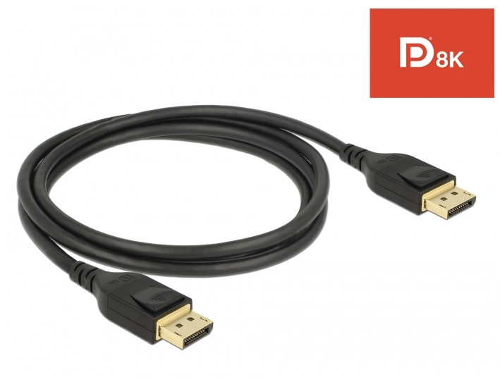Ezt a tanúsítvánnyal rendelkező Delock DisplayPort kábelt használhatja DisplayPort interfésszel rendelkező eszközök összecsatlakoztatására: például monitorok, kivetítők vagy televíziók személyi számítógéppel vagy laptoppal történő összekapcsolására. A 32,4 Gb/s maximális sávszélesség biztosítása esetén a tartalom 8K Ultra HD-n (7680 x 4320 60 Hz-en) jeleníthető meg hozzávetőlegesen 5K (5120 x 2880 120 Hz-en) és 4K Ultra HD (3840 x 2160, 240 Hz) felbontással. A kiváló minőségű, hármas árnyékolású kábel jelentősen javítja a hangátviteli minőséget is 1536 kHz-es mintavételi sebesség mellett.