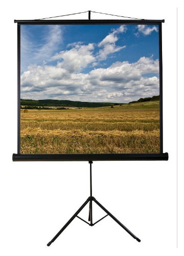 Kézzel le- illetve felhúzható, hordozható vetítővászon háromlábú állvánnyal.