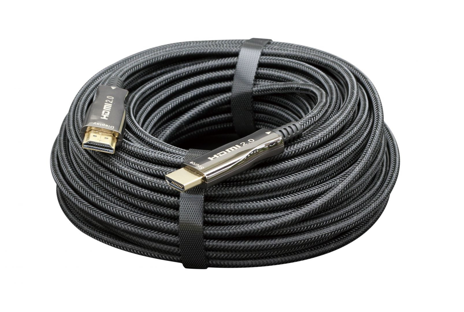 Ezzel az aktív optikai kábellel HDMI csatlakozóval rendelkező eszközöket, például monitorokat vagy tévéket csatlakoztathat számítógéphez vagy laptophoz. Ez az aktív optikai kábel hosszabb távon is veszteségmentesen tud jeleket továbbítani.