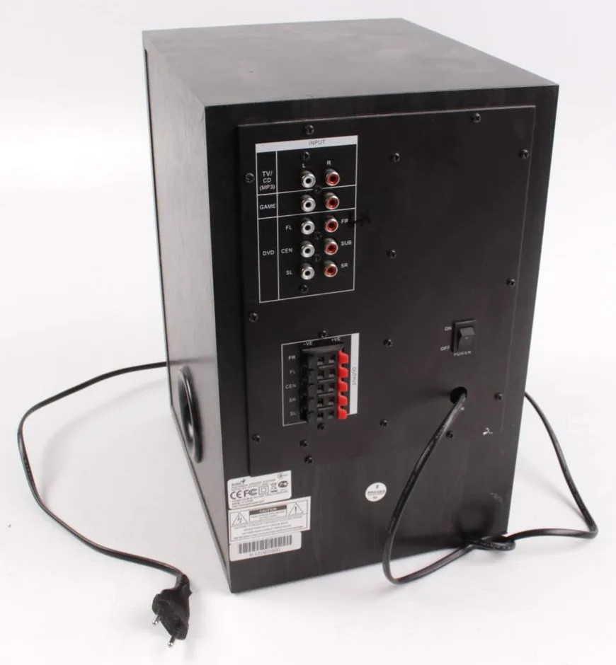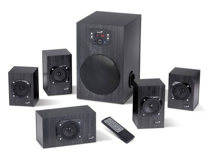 Ez a 6 részes 5.1 csatornás térhatású hangszórórendszer stílusos külsővel rendelkezik, és öt szatellit hangszórót és egy nagy mélynyomót tartalmaz, amely a basszus effektusokat biztosítja.