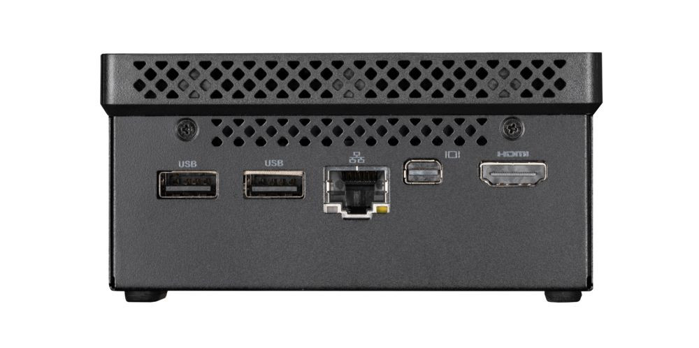 Hely- és energiatakarékos mini PC RAM és HDD nélkül. Intel processzor, SATA HDD/SSD hely, M.2 SSD foglalat, SO-DIMM RAM foglalat jellemzik. Gigabites hálózati csatlakozása, és 4db USB 3.0 portja van (ebből 1 Type-C). Beépített ac-s WiFi és Bluetooth-al rendelkezik. HDMI és mini DisplayPort portjai támogatják a dual display megjelenítést.