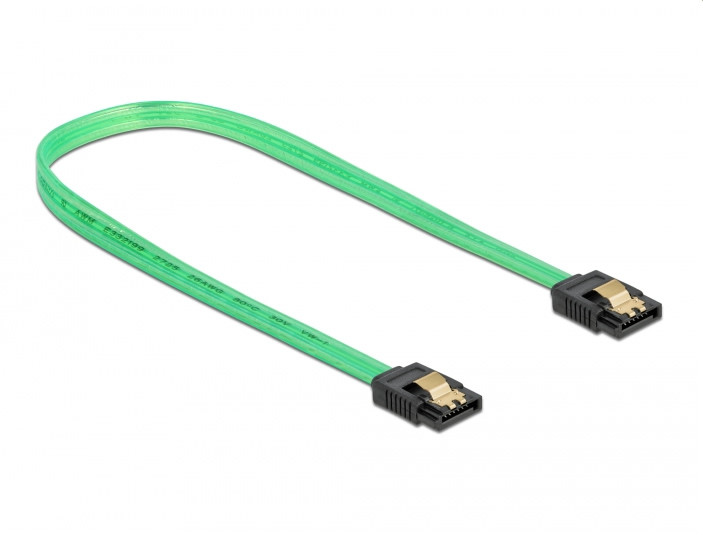 Ez a Delock SATA-kábel különféle SATA-eszközök, például merevlemezek, vezérlőkártyák vagy Flash-memóriák belső csatlakoztatását teszi lehetővé. A csatlakozókon lévő fémkapcsoknak köszönhetően a kábel megbízhatóan rögzíthető.