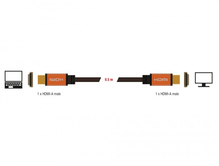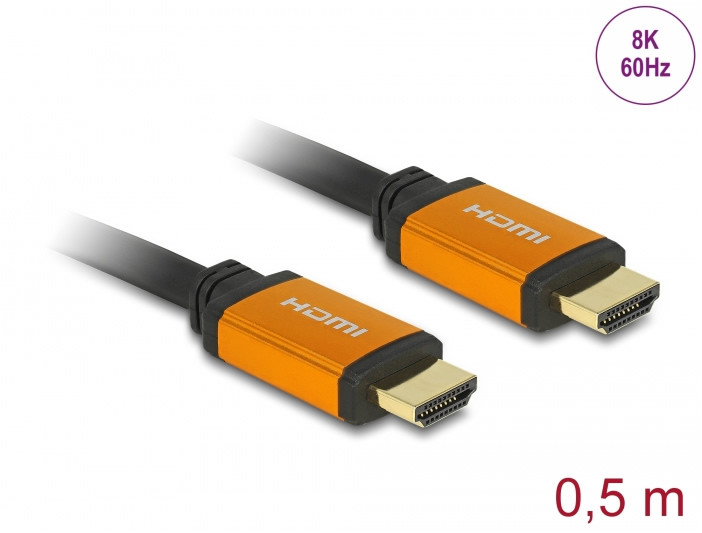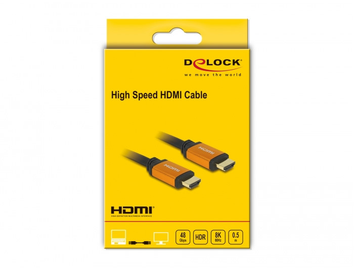 Ez a kiváló minőségű Delock nagysebességű HDMI-kábel a HDMI interfészen keresztül összeköthet eszközöket, például televíziókat, Blu-ray lejátszókat, monitorokat vagy kivetítőket. A 48 Gb/sec maximális sávszélesség támogatásával a tartalom 8K Ultra HD (7680 x 4320 60 Hz-en) felbontással jeleníthető meg.