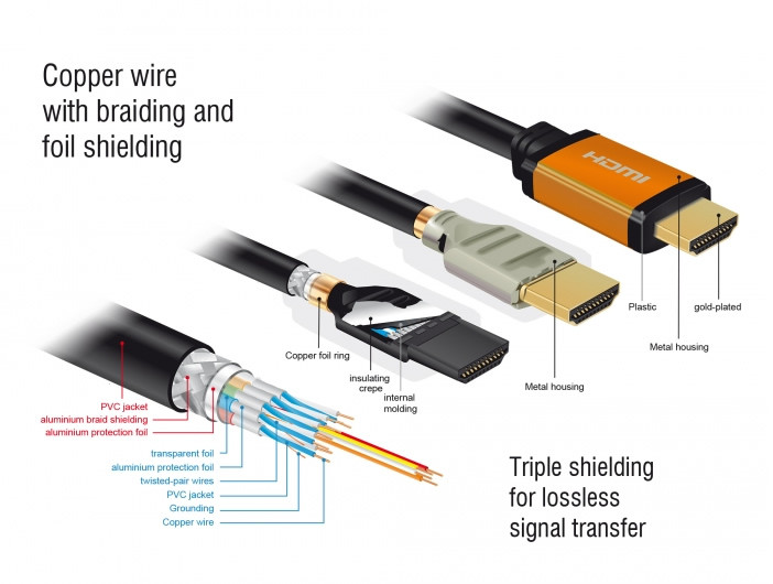 A Delock HDMI kábel támogatja az Enhanced ARC (eARC) funkciót. Ez lehetővé teszi a HDMI készülékek, például a Blu-ray lejátszók közvetlen csatlakoztatását a televízióhoz. A tömörítetlen audiojeleket ezután közvetlenül és veszteség nélkül közvetítik a csatlakoztatott hangrendszerbe a visszajátszási csatornán keresztül.