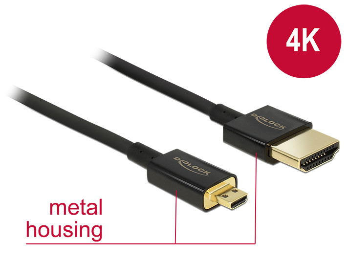 HDMI-micro HDMI (D) kábel (4K, 3D) 1,5m (aranyozott csatlakozókkal) – DeLock