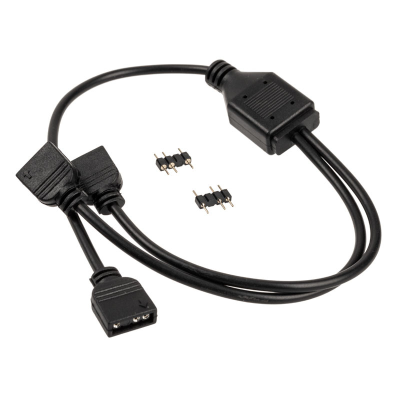 ARGB 3-tűs Y-Splitter kábel, 2x ARGB 3-tűs csatlakozó eszközök csatlakoztatásához az alaplap ARGB 3-tűs csatlakozójához. Egy 5V-os 3-pólusú címezhető A-RGB LED-csatlakozót átalakít két 5V-os, 3-pólusú címezhető A-RGB csatlakozóvá