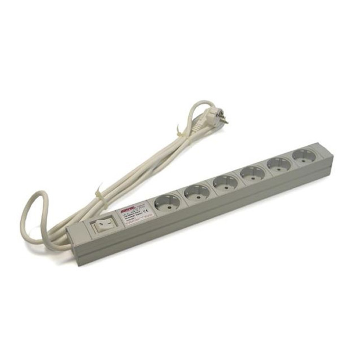 Kontaset 19″-os rackbe szerelhető, 6 aljzatos, 220V-os elosztó kapcsolóval