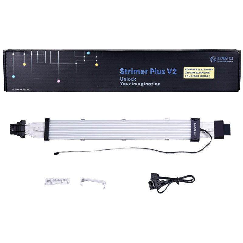 A 12VHPWR hosszabbító kábel nyolc fényvezetővel van felszerelve. Összesen 108 ARGB LED-jük közvetlenül csatlakoztatható az alaplaphoz a mellékelt 6–3 tűs 5VDG adapteren keresztül, és szinkronizálható az alaplap gyártójának szoftverével, vagy konfigurálható a Lian Li L-Connect 3 szoftverével.