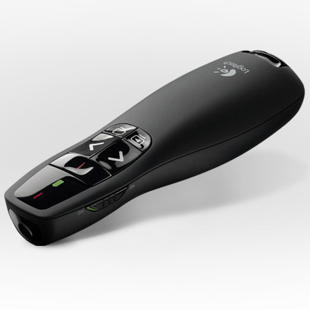 A vezeték nélküli bemutatóvezérlő kényelmes kezelőszervei segítségével mindig a lényegre mutathat.