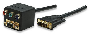 DVI-I apa csatlakozóbót fordít VGA anya, illetve 3xRCA anya csatlakozóra