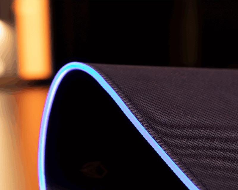 Szövet felületű, szélein világító egérpad. 11 különböző LED effekt, közöttük gombnyomással válthatsz, de ki is kapcsolhatod. A világításhoz USB-ről tápolható, de a kábelt ki is húzhatod, ha zavaró.