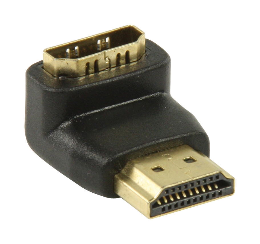 90°-os L alakú HDMI toldó elem. Ideális, ha kevés a hely a kábelek elvezetésére, és el szeretnénk kerülni, hogy a kábel megtörjön.