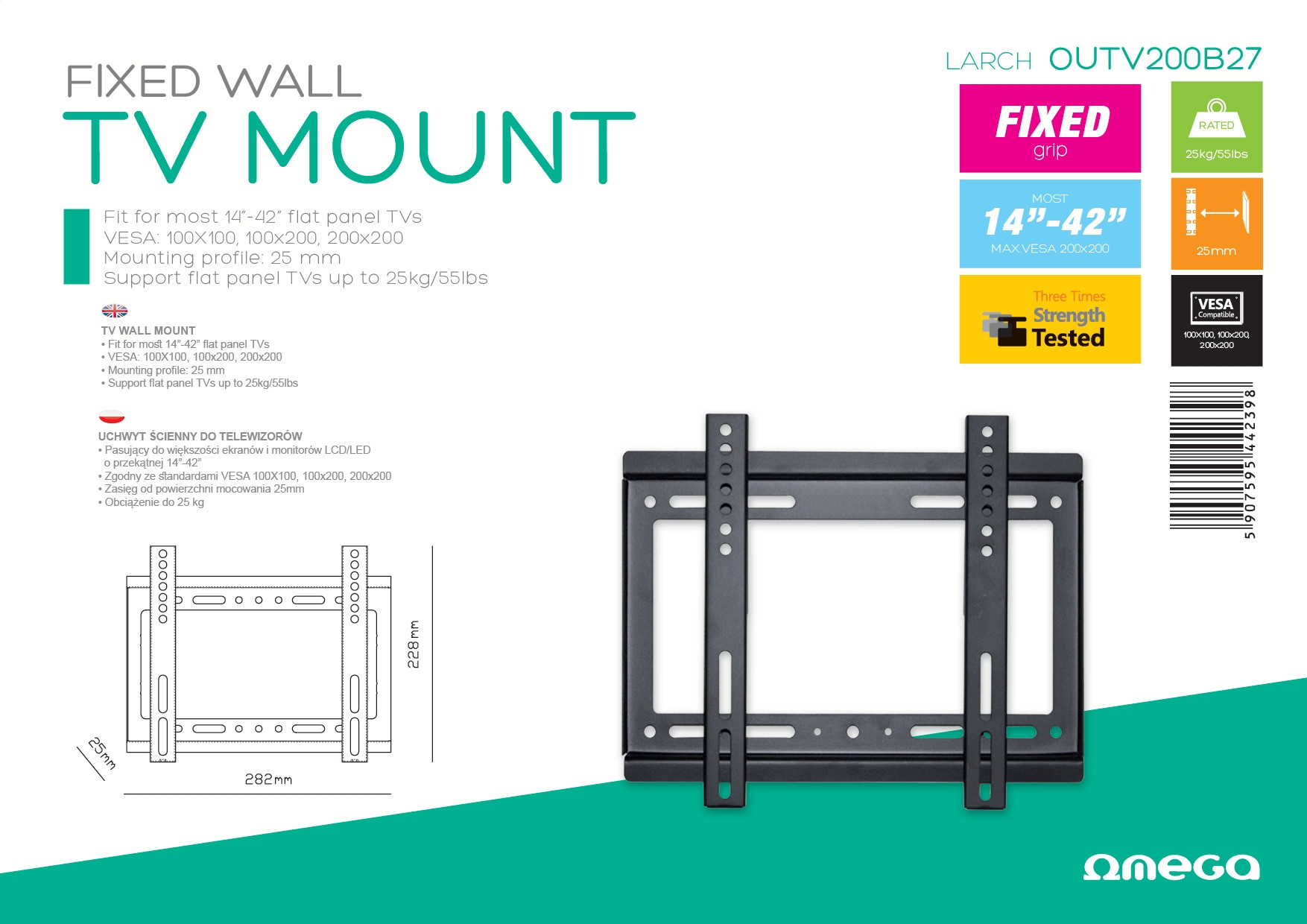 Univerzális fali tartó LCD/LED képernyőkhöz. Alkalmazható 14 – 42″-os képmérethez, maximum 25 kg terhelésig.