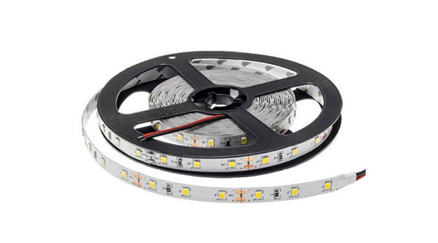 LED-es világító szalag 5 méteres hosszban, 60 db SMD LED-el méterenként. IP20 védettséggel, beltérre, dekorációs célokra, mennyezet világításra, díszlécek mögé és élvilágításhoz. 3M öntapadós ragasztószalaggal.