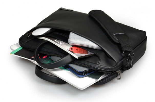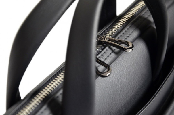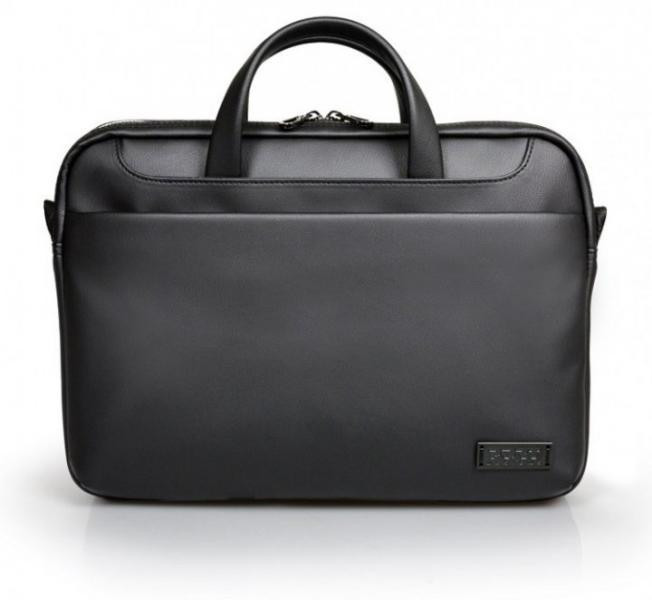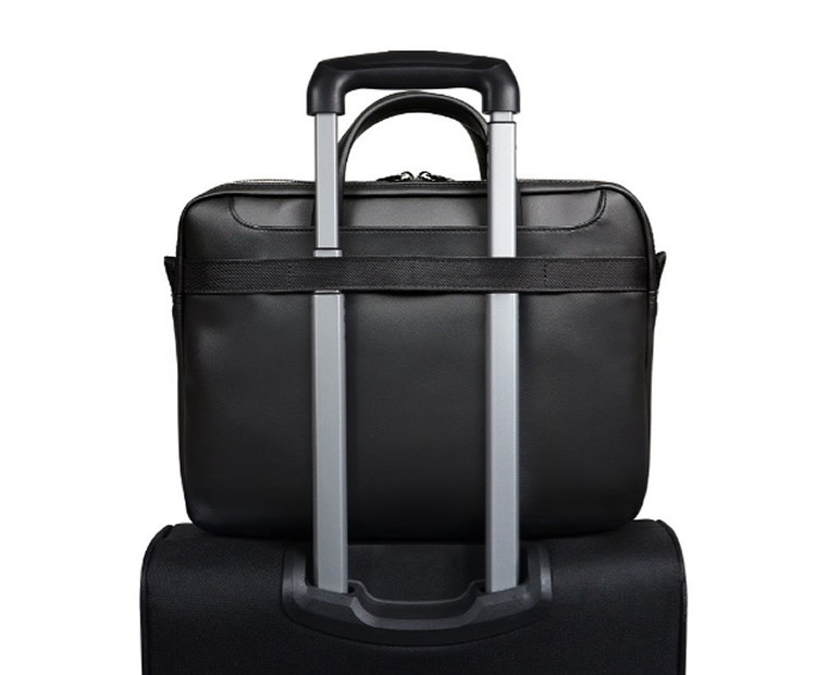 Elegáns, fekete műbőr laptoptáska 14 – 15,6″-os méretű laptop és kiegészítői számára extra tároló zsebbel, bőröndre rögzítési lehetőséggel